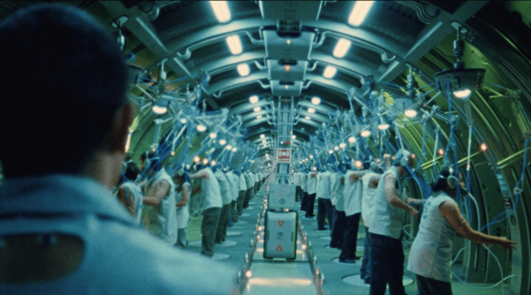 Merece destaque também a cena do filme em que Memo adormece por 10 segundos, durante mais uma jornada de trabalho exaustiva que, em média, era desempenhada por 12 horas, tendo a máquina à qual ele estava conectado informado que aquele curto intervalo seria descontado da sua remuneração. De acordo com Jonathan Crary (2016, p. 13), os mercados globais há anos já atuam “em regime 24/7 – 24 horas por sete dias na semana”, todavia “agora é o homem que está sendo usado como cobaia para o perfeito funcionamento da engrenagem.” Segundo o autor, o “sono é a única barreira que resta, a única “condição natural” que subsiste e que o capitalismo não consegue eliminar (CRARY, 2016, p. 84).” e no filme percebe-se que a tecnologia até isto pretende controlar.